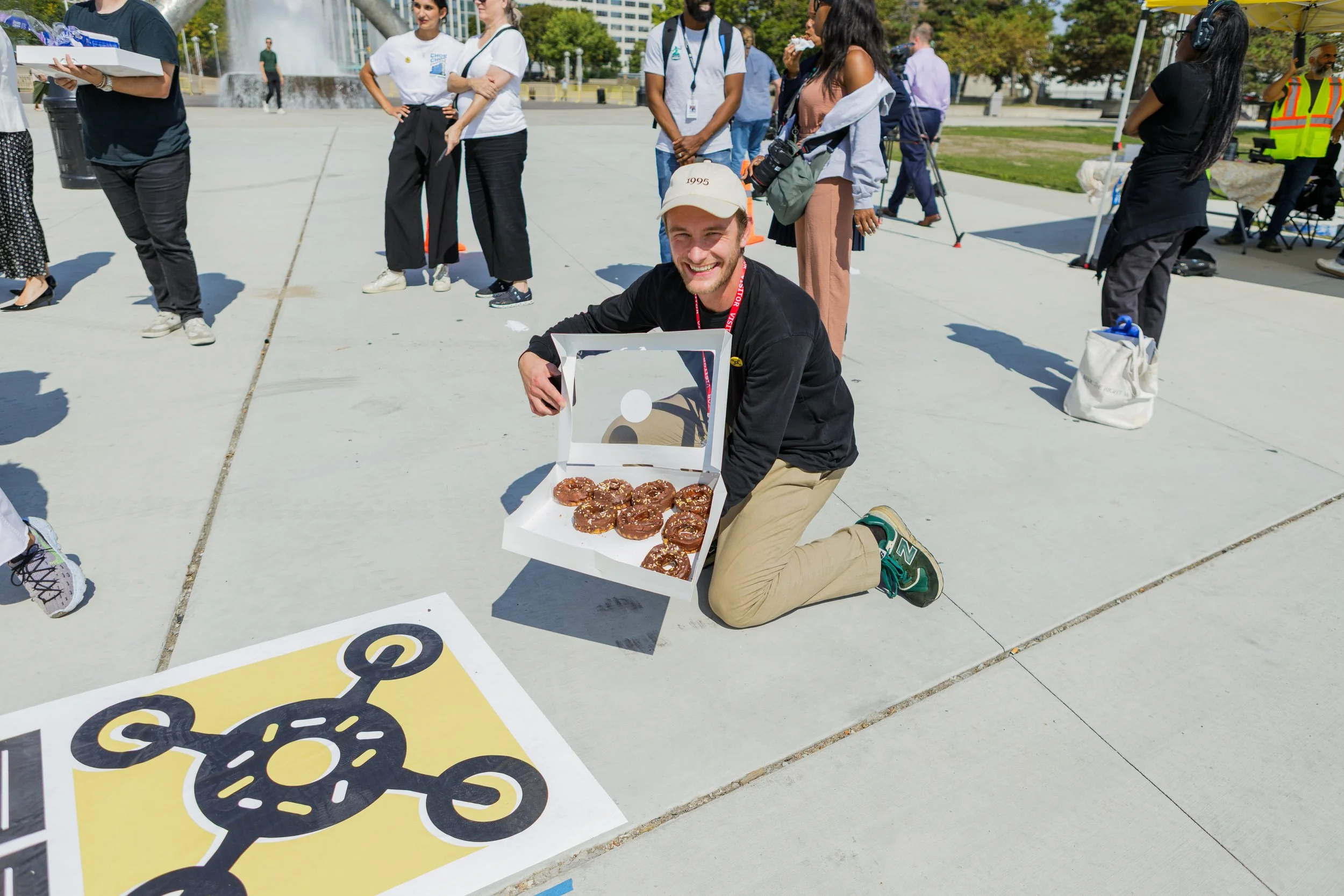 We capped off the summer with Dronuts™ (yes,™) —a cross-city stunt where donuts were delivered by drone. In partnership with our friends at Michigan Central, Newlab, Aerialoop, Airspace Link, and Code 313, we celebrated National Donut Day in the most Detroit way possible.
